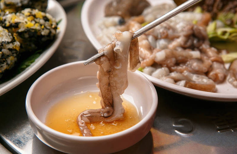 Sannakji is made by cutting a squid into several parts and serving it raw. The method is widely debated, but it is still a fairly common South Korean dish. The squid is served while it is still somewhat alive, and if you do not chew properly, the cups on the tentacles may get stuck in your throat and suffocate you to death. This is the cause of death of about six Koreans a year.
